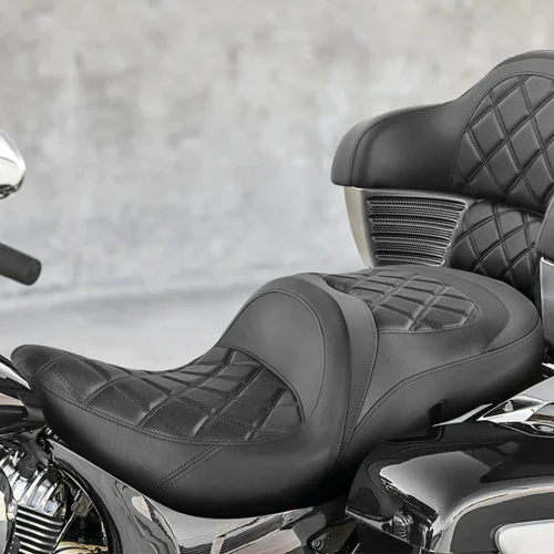The 2-Up Reach seat provides maximum comfort for the rider and passenger. It is cut and diamond stitched by hand and is treated for enhanced durability in all conditions.