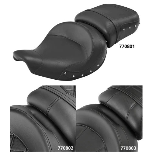 Cowhide leather 2-Up seat has a gently curved shape that provides hours of passenger comfort, whilst the large backrest area in the driver section is great for long touring.