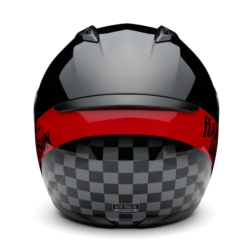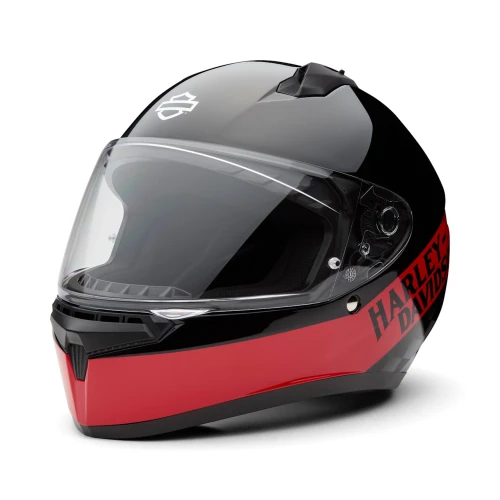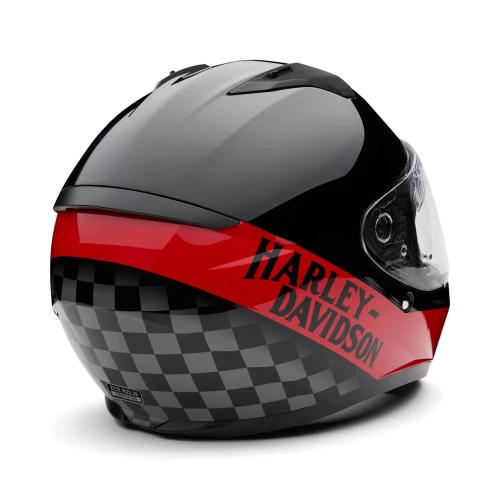 Vibrant style meets comfort and visibility with our latest H-D™ Capstone Sun Shield III H35 Modular Helmet. Its ventilation advancements deliver full front-to-back airflow to flush heat and humidity out on every ride. This motorcycle helmet has a dynamic multi-step sun visor that maximizes visibility in varying light conditions. Its advanced polycarbonate composite shell provides a lightweight, superior fit that meets applicable safety standards. Designed with a wind tunnel-tested rear spoiler to reduce drag, and boldly finished with race-inspired artwork for a winning look. See all its specs below, then snag yours now.