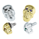 This is where the "Skull-Mania" starts. Detailed, three dimensional studded Skulls with colored eyes, complete with washers and nut. Usable for license plate mounting, on your leather accessories or just as another decorative item on your bike. These Skulls are available with 5 different color eyes, and two different sizes, small (2cm high) and large (4cm high). Sold each.