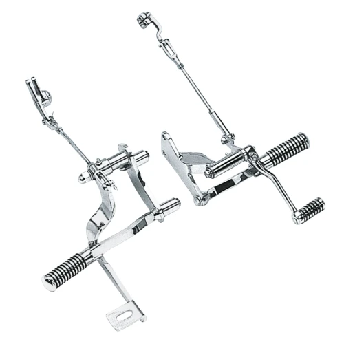 Comfort, style and a custom appearance are combined in these American engineered forward control sets. Available from Zodiac for the latest Harley models. Sets are available for all 5 Speed FXR, Shovelhead or Evolution powered 1982-1994 and for the 1986-2003 Evolution powered 883-1100-1200 Sportster. These controls are easy to install without removing the primary covers. All parts are show-chromed and complete with Zodiac's O-ring foot pegs. This is the way to go for easy Hi-Way cruising and a superb Custom look.