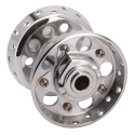 These spool style hubs are engineered from the ground up to duplicate the original parts dimensions and appearance, but with the added reliability of Timken-style bearings and conventional oil seals. Don't confuse this quality part with other manufacturers replacement hubs or those questionable hub conversions you read about. No expense is spared in the design of this new part to give you the finest Star Hub money can buy. Features include extra-thick spoke flanges, beautiful Chrome plating or black coating, adjustable bearing pre-load and Timken-style bearings. All hubs come complete with bearing pre-load set at the factory.