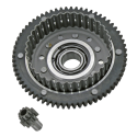 These high quality replacement clutch shells come with a 66 tooth starter ring gear and 9 tooth starter motor pinion gear to improve starting on high compression and Big Inch engines. Feature factory installed bearing and bearing retaining ring, and take stock style clutch hub and clutch discs.