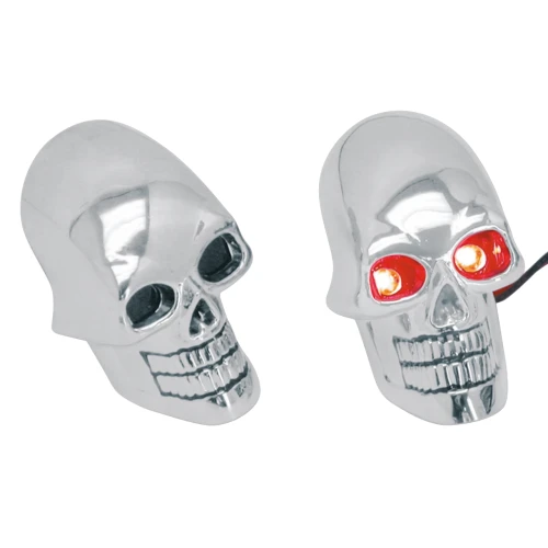 Detailed, 3 dimensional design with a chrome finish and red LED lighted eyes. Lights are 2" high and sold in pairs.