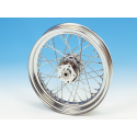 These wheels are available with Chrome or polished Stainless Steel spokes laced to Chrome rims and hubs. The hubs feature thicker spoke flanges and have 5/16" or 7/16" holes on both sides. All hubs accept any stock sprocket & rotor or rotor & rotor combination for greater flexibility when building custom wheel combinations. They include all internal spacers, seals and washers; bearing pre-load is set at the factory. The wheel assemblies will bolt on to most models from 1973-1983.