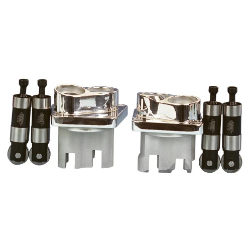 These tappet kits for Panhead and Shovelhead motors are capable of the highest RPM a Harley can safely run at a valve lift of up to .700" in combination with the right valve springs, valves and cam. The use of these hydraulic tappets enables Panhead and Shovelhead motors to have all the hydraulic benefits of the late Evolution style hydraulic system, as they will eliminate the total oil loss of the old style hydraulic units. The billet tappet blocks are made from 7075-T651 with a tensile strength of 83,000 psi which is almost triple the amount of cast tappet blocks. Fits Panheads 1953 thru 1964 and Shovelhead from 1965 thru 1984. Do not use the early tapered 1/4"-24 screws on these blocks unless you provide a counter sunk for that style screws.