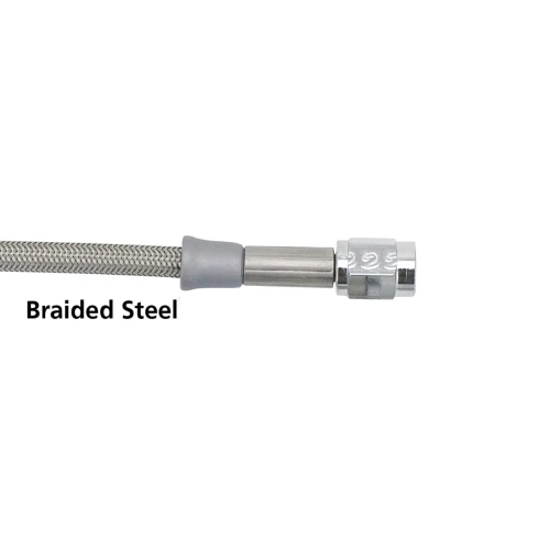 These uniquely designed, top quality parts enable you to make any OEM replacement or custom length hydraulic brake or clutch line up to 79" (198cm) in less than 5 minutes. Brake lines with chrome connectors are available in braided stainless steel, clear coated braided stainless steel and Carbon Look covered. The brake lines in Ebony All Black feature black lines and black connectors. The variety of fittings and pipes enable you to hook up any caliper to any master cylinder. Just check the length of the brake or clutch line that is needed, and which fittings are needed at both ends and just assemble the parts into a complete hydraulic line. The superb quality of these parts has already been proven. All lines come with approval. The all chrome or black fittings are available from your Zodiac dealer only.