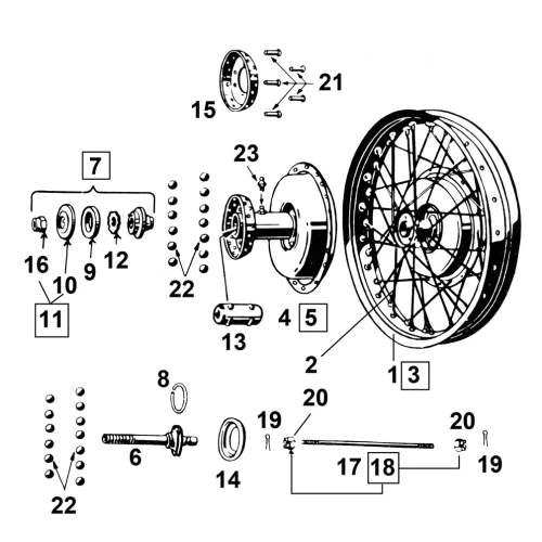 Exact duplicates from the spokes as used on 45CI Solo and Servi-Car models with the half drum brake front hub.