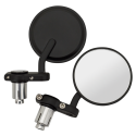 Café Racer style billet aluminum mirrors that simply slip into your handle bar ends. Available for 7/8" (22mm) and 1" (25.4mm) handlebars. Please note that most larger diameter handlebars for Harley-Davidson are 1" diameter at the ends. Mirrors are 3" (7.6cm) in diameter and sold in sets for left and right.