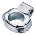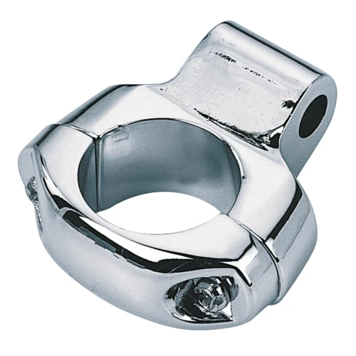 Classy looking, chrome plated two piece mirror clamp designed by Miller's custom cycle, for mounting Harley style mirrors to 1" handlebars. Has 5/16" non threaded mounting hole. Can be used left or right also usable for many other fitting applications.