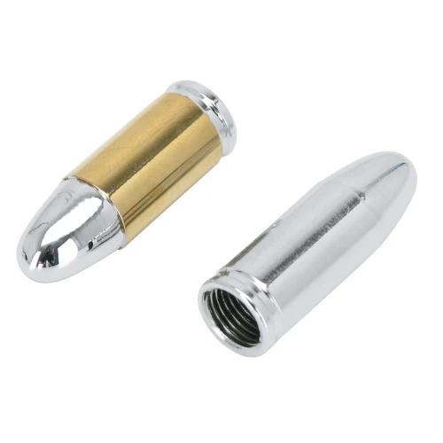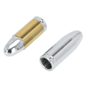 Replace those dull plastic tire valve stem covers with these bullet style covers in all chrome, or gold/chrome finish for that finishing touch of your wheels. Sold each.