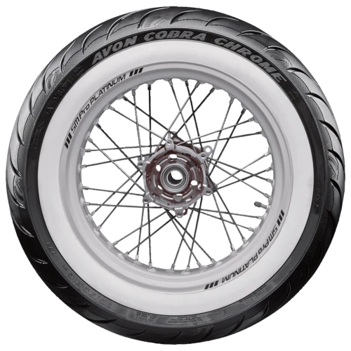 Avon Cobra Chrome tires are the next chapter in the long and rich Avon history. These are the tires of choice for the cruiser rider in search of safety, joy of riding and individuality. Avon Cobra Chrome tires have a unique design and detailed aesthetic features, like the bespoke snake skin appereance and embossed Cobra head logo. Enhanced compounds and new construction deliver improved stopping distances in wet braking tests, as well as a up-to 5% larger footprint. The highly durable compound is capable to deliver up to 10% extra mileage in comparishion with Avon Venom and Cobra tires. All Cobra Chrome tires are Tubeless and available in all black and whitewall versions. Chrome is only the name!