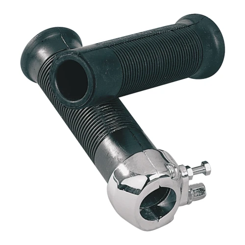 Universal throttle assembly for use with single cable carburetors. Available for 7/8" (22mm) and 1" (25mm) handlebars. All metal housing and twist grip with black rubber throttle sleeves.