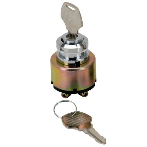 Chrome plated three position ignition switch. The late style switch has a smaller diameter housing as the early style switch and can be retrofitted to early models. The late style switch can also be used as replacement for the OEM 71441-94 switch on later FX, FXR, Dyna and Sportster models when you fabricate wires with ring terminals.