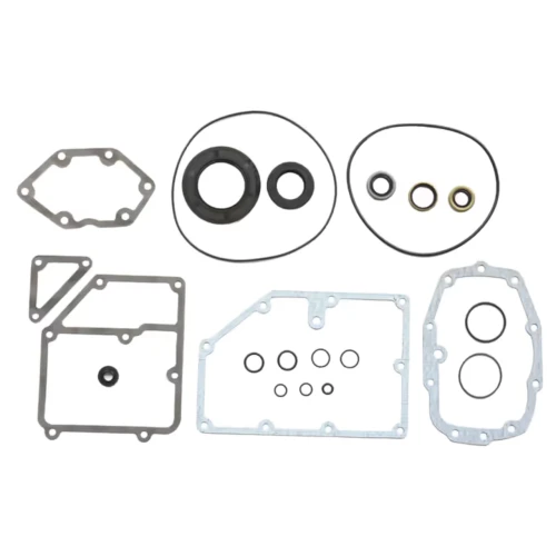 Gaskets, seals, and O-rings for 5 Speed transmissions as used in late 1979-2006 FLH and FLT series, 1986-2006 Softail, 1982-1994 FXR and 1991-2005 Dyna. Complete sets include all the gaskets, seals and O-rings needed for a complete rebuild. Transmission oil seal kits include all the necessary O-rings, oil seals and, where applicable, sprocket nut lock washer, but no gaskets.