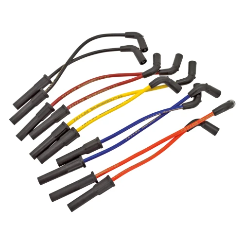 Sumax claims that these are the only plug wires that prevent your plugs to carbon up because of their superior ability to fire unspent gases. With Thundervolt wires your plugs are being cleaned when your bike idles. Consequently your bike will start and run better. The Sumax ferrite spiral wound core with a blend of copper/nickel alloy is bonded by a conductive acrylic cover and feature "Pro" spark plug boots with a vibration proof double spring locking spark plug terminals.
