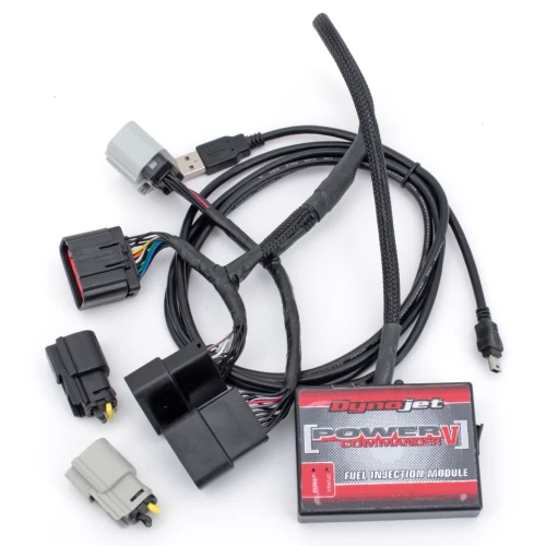 The Power Commander 5 tuner optimizes your ride anywhere you’ll roam. This sleek module seamlessly optimizes your air/fuel ratio without directly changing the ECU, making it effortless to push it to the max. Easily uninstall to revert back to factory default settings. Power Commander 5 takes the guesswork out of pairing efficiency with performance, keeping your focus where it belongs — on the journey ahead. The Power Commander 5 has a fuel change range of -100/+250%, giving you the best mix of performance and fuel efficiency at all times. This fuel tuner holds two maps at a time for multiple drive options when youn install an accessory switch, as well as 10 throttle position columns, so you won’t sacrifice comfort for performance. Featuring a plug-and-play kit, Power Commander 5 can be installed discreetly underneath your seat, ensuring your ride looks as good as it runs. The separately available Auto-Tune includes control boxes, two M18x1.5 Wide Band O2 sensors, and weld-in sensor bungs required for models with three-wire type pre-heated O2 sensors or that do not have O2 sensor bungs at all. Plugs directly into the PC5 and allows automatic fuel adjustments while riding. It can map each cylinder separately for each gear if needed (basic settings would make one map for all gears). Each map cell is individually adjustable so you can specify an exact Air Fuel Ratio value for each area if needed. This allows the tuner/user to select specific AFR targets for idle, cruise, and large throttle opening areas. By doing this you can automatically tune the cruise area for best fuel economy while at the same time achieve maximum power at wide-open throttle. If Dynojet does not have the exact map for your combination of parts you simply need to choose the closest one and let the Auto-Tune kit do the rest. These special maps are downloadable at www.powercommander.com