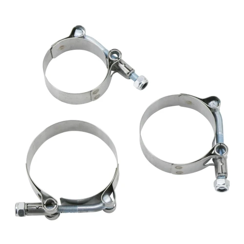 Exactly the same stainless steel band style clamps as used by Freedom Performance on all their exhaust systems. Can of course be used for every muffler or exhaust.