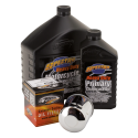 Easy does it! Just one part number to get everything you need for an engine oil change, a complete oil change or an oil change complete with a spark plugs change. We have selected for you the right type of Spectro oils, volumes, right oil filter in black or chrome and put these together in one box. We also have kits that include the correct spark plugs. And for the most demanding riders with a 2006 or later 6-speed transmission we have Platinum Plus kits available that include Spectro's special formulated noise-killing Platinum Gear oil. All kits are available with your choice of chrome plated oil filter or black painted oil filter.