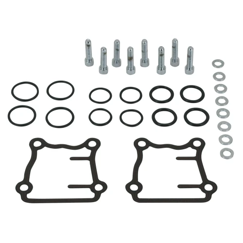 Kit contains O-rings for the upper, middle and lower push rod cover, Silicone beaded SteelCore gaskets for the tappet cover and 8 chrome plated screws with washers for the tappet cover. Fits all 1999-2017 Twin Cam.