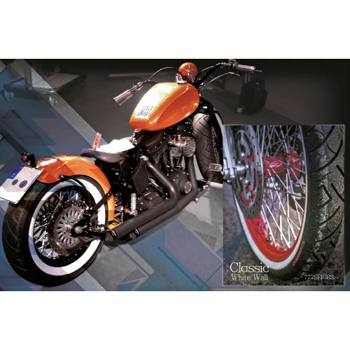 The Shinko SR777R is specifically designed for cruiser machines and is available in a multitude of sizes to fit many American V-Twin and metric cruiser models. The tires are also available with white side wall, indicated below as WWW, as well as with Reflective side walls which are almost completely unnoticeable until light hits the sidewall. Features include: H or V rated tubeless, four or six ply rated and Aramid belted (150/90-16, 90/90-21 nylon belted).
