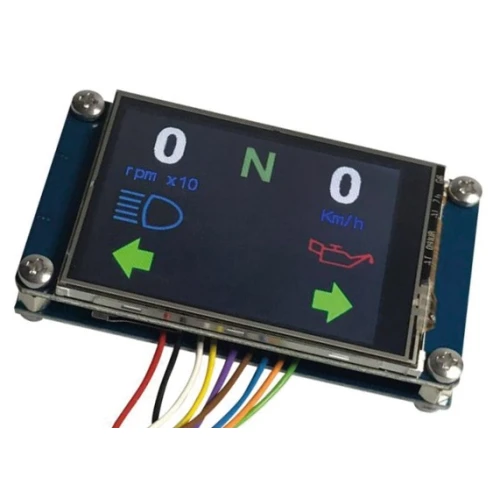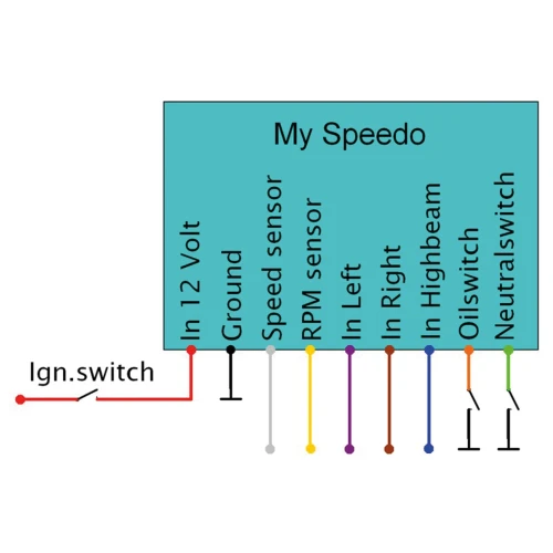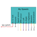 My Speedo is a fully programmable speedo that is displayed on a graphical LCD screen. It contains an easy to connect to interface module that takes the input from the speedo and tacho signals, as well as the turn signals, high beam, neutral and oil pressure wires. All information is displayed on a 400 x 240 pixel touch screen display. All elements like speedo, revs and odo values, as well as the warning "lights" and background can be fully customized with any font and graphic, and can be placed at any location on the screen with the free downloadable Nextion editor. Outside of display module measures 95 x 47.6 mm with a screen area of 69.6 x 41.8 mm and is intended to be build into a dash, like we did on our 50th Anniversary Golddigger custom bagger.