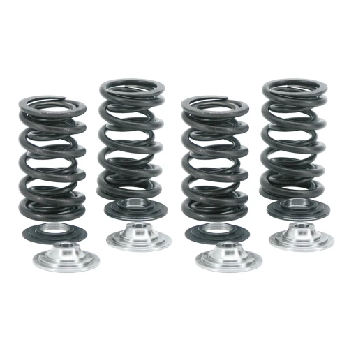 These valve spring kits are designed for a wide range of applications. They may be used in a mildly tuned Street Cruiser, a highly tuned roaring Strip Burner and anything in between. Springs may be used for cams up to .690" lift and spring pressure can be set from 180 to 230 pounds. These Kibblewhite Precision Machining designed and manufactured spring kits are made of extra Heavy-Duty race quality and lightweight materials, making them very suitable for any High Performance engine. Kits include 4 pairs of 15-degree machined heat treated steel keepers (except for 2005 to present Twin Cam, these use the stock keepers), 4 double racing valve springs, 4 hard anodized lower collars except for Shovelheads, these use the stock lower collars), and 4 either heat treated steel retainers, or 7075-T6 hard anodized aluminum alloy retainers or titanium retainers. Kits for V-Rod include 8 double racing valve springs, 8 heat treated steel lower collars, and 8 titanium retainers. Dependent on the application shims to set the installed spring height may be included.