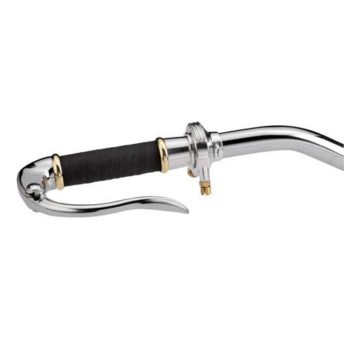 Retro controls that look like they have been just taken from a classic motorcycle, but then in showroom condition. The big difference with Retro controls is that they slip into the handlebar ends and the levers point inwards. They are designed to work with cables for both front brake and clutch and are available in true Old Skool finishes. A perfect match of course with Kustom Tech's throttle housings. Handlebar control assemblies are the same for left and right and are sold each, matching handlebar grips are also available.