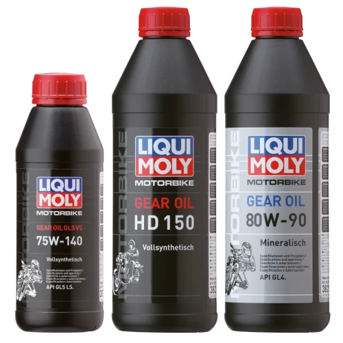 High-performance high-pressure oils. Facilitates smooth and precise shifting even under extreme conditions and complies with performance class API GL4 or GL5. Has excellent wear protection properties and ideal viscosity-temperature behavior. Also available is the HD150 primary oil, specially blended for use with chain-driven closed primaries and clutches on 1984-2010 Harley-Davidson.