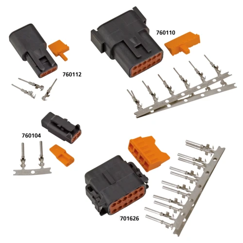 Deutsch Mini connectors are found on many Harley-Davidson models from 1998 to present. To make life easy we supply these as complete sets with male or female plug with wire terminals and wedge, whereas OEM supplied as all individual parts.