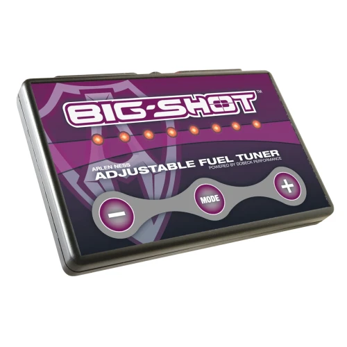 The Big Shot Adjustable Fuel Injection Tuner is a new load-based fuel injection module that does not require any splicing or modifications to your motorcycle during installation. Big Shot modules come pre-loaded with base maps for different models which can then be fine tuned for each individual's riding style and bike with three buttons. Tuning is so easy that laptops and dyno machines are not required to maximize your motorcycle's performance. Utilizing the latest in load-based technology in fuel injection performance, the Big Shot detects the exact amount of load on the engine at any RPM and any road speed and delivers the perfect amount of fuel to the engine for optimum performance. This is a superior design over fuel injection modules that work off of throttle position. As throttle positions can be the same at different speeds and with different loads on the engine, with the same amount of fuel injected into the engine in these varying conditions, performance can suffer.