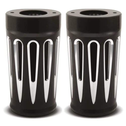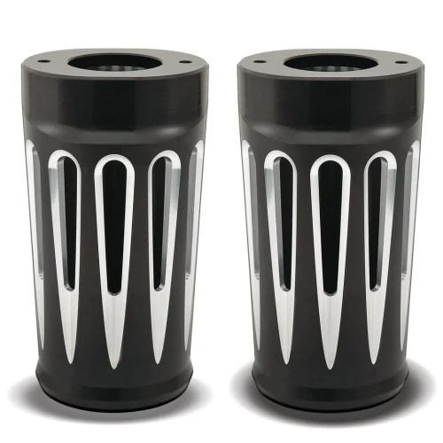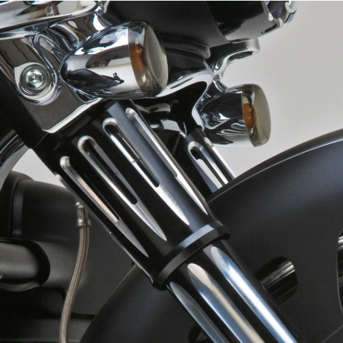 Radically change the look of your front end. Replaces the OEM lower fork leg covers. Machined from forged 6061-T6 billet aluminum. Also available in 2" longer than stock for use with over stock fork tubes. Sold in pairs.