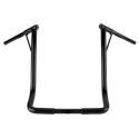 These handlebars are 1 1/4" (32mm) in diameter with 1" (25.4mm) ends to accept stock controls and 1" in diameter at the risers. Bars are dimpled and pre-drilled to accept internal wiring and are great in combination with Batwing fairings. Handlebars are ready to take either Throttle-by-Wire or cable throttle.