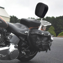 These kits contain a passenger sissy bar upright with the model-specific rigid mount side straps, matching back pad and matching luggage rack. They are rigid mounted but you can uninstall the complete kit or just the sissy bar or just the luggage rack with regular hand tools in a minute or five. Kit has a 49cm total height, pad is 29cm wide and 22.5cm wide, rack is 22.5cm wide and 21.8cm long.