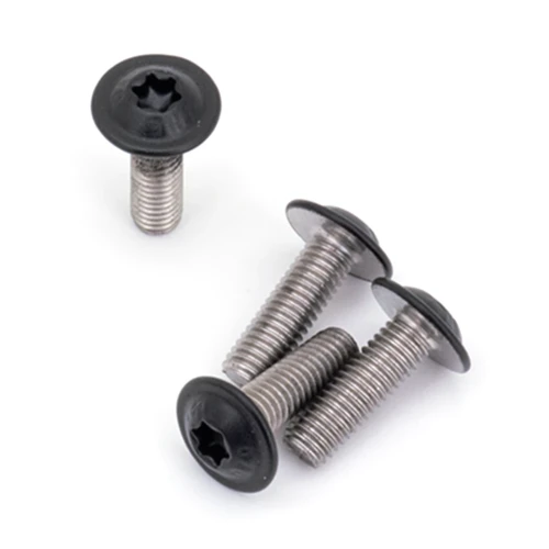 Set of stainless steel screws with black powder coated heads to fit the OEM muffler heat shields.