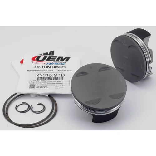 These pistons are made from forged 4032 alloy that has an 11% silicon content. Pistons are formed in a forging press an then fully machined. the combination of this alloy and forging process allows the piston to flex under detonation or pre-ignition, giving the best resistance to cracking. Since 4032 alloy has a low expansion rate but higher than the Keith Black Hypereutectic pistons, it will require a .001" wider piston to wall clearance. Keith Black forged alloy pistons are suited for High Performance street and race applications including high compression and NOS equipped bikes. All pistons come with a set of Hastings piston rings, piston pins and spiral piston lock rings. Where indicated pistons come with an Anti-Friction skirt coating.