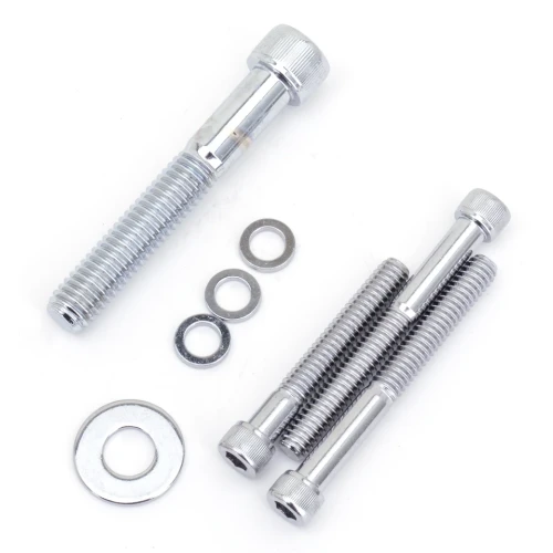 Chrome Allen head screws that hold the sprocket cover to the engine. Allen heads are also known as hex socket cap screws.