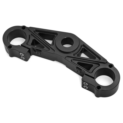 Please take the time to pay attention to the design details in these precision made and precision finished upper and lower fork yokes. Lower tree is to be installed with the OEM steer stem, you will need an hydraulic press to remove and install this. Upper and lower trees are sold individually so you can go for all black or all polished or any combination.