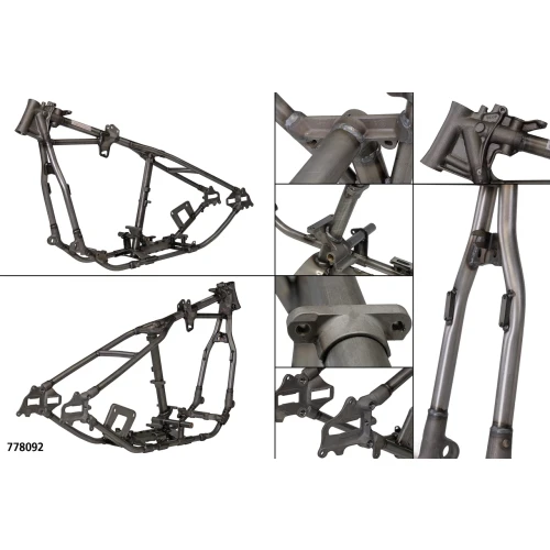 These Made-in-Holland replica frames feature perfect copies from the stock steering heads, lugs and joints, all casted from Nodulax steel and bearing the authentic numbering. All other brackets, mounts and stops are exact copies from the original parts used in these years too. Cast, machined steel and sheet metal parts are welded to seamless thick walled tubing by hand in jigs that are proven to give a perfect result.