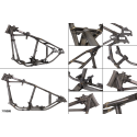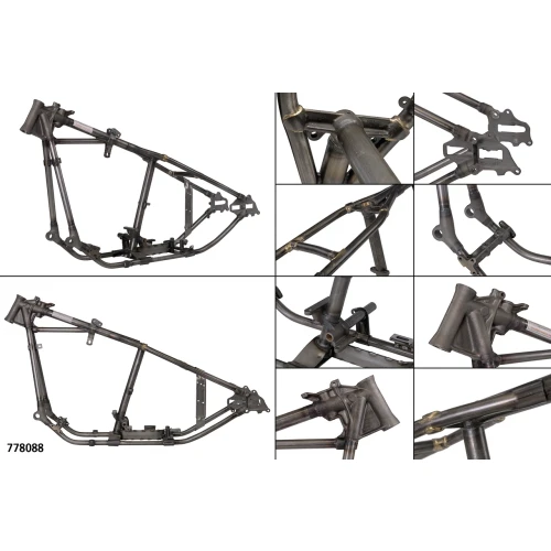 These Made-in-Holland replica frames feature perfect copies from the stock steering heads, lugs and joints, all casted from Nodulax steel and bearing the authentic numbering. All other brackets, mounts and stops are exact copies from the original parts used in these years too. Cast, machined steel and sheet metal parts are welded to seamless thick walled tubing by hand in jigs that are proven to give a perfect result.