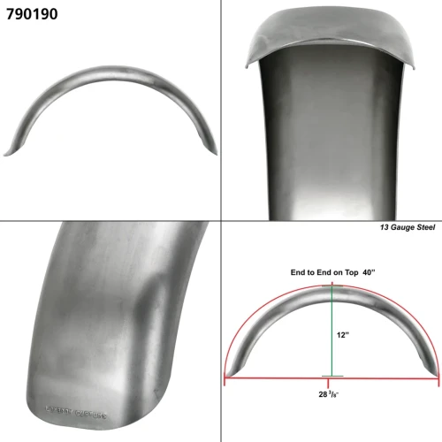 Steel 13 gauge (2.3mm) thick universal Duckbill-style rear fenders for use with 16"-18" wheels in hardtail frames give a 180 degree wheel coverage. Can also be used in swing arm applications when the fender is installed in such a manner that it moves together with the wheel.