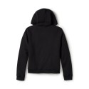 Zip front with hidden snap placket. Zippered sleeves (jacket). Zip front (hoodie).