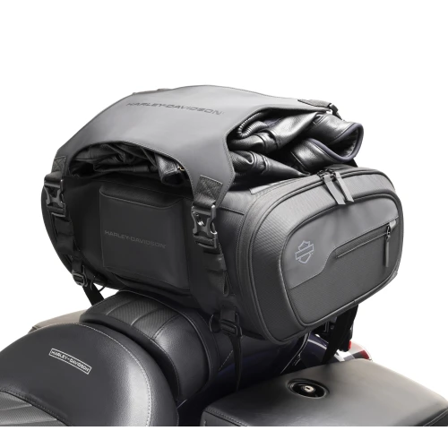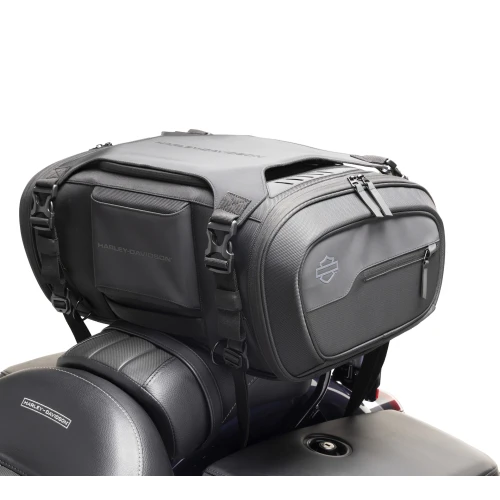 Designed to be mounted with a sissy bar. Side and top zipper openings offer multiple ways to pack and access your gear while zippered pockets