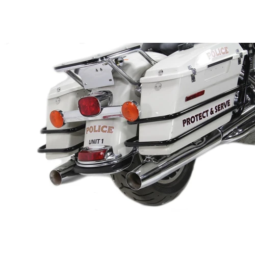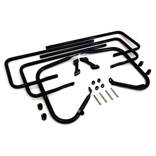 Saddlebag guard kits contain bars as described, as well as the necessary hardware and mounting instructions.