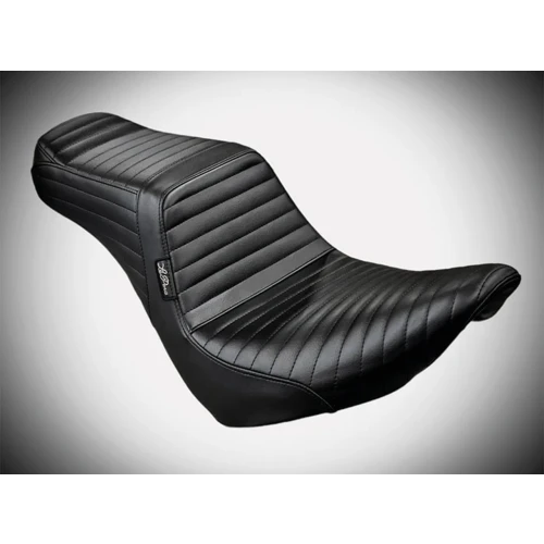 This is the 2-up version of Le Pera's Kickflip seat. it's more comfort for the passenger or just another platform to let your adventurous side explore, the whipped-up tail will give you what you are looking for. Seats give the driver a 12 1/4" (31cm) wide seating area, and the passenger 7" (18cm) wide seating area. The Daddy Long Legs version puts the driver 2" (5cm) further back in the seat. The Up Front version puts you more to the front, which is great for riders that have shorter than average legs.