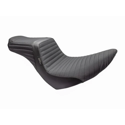 This is the 2-up version of Le Pera's Kickflip seat. it's more comfort for the passenger or just another platform to let your adventurous side explore, the whipped-up tail will give you what you are looking for. Seats give the driver a 12 1/4" (31cm) wide seating area, and the passenger 7" (18cm) wide seating area. The Daddy Long Legs version puts the driver 2" (5cm) further back in the seat. The Up Front version puts you more to the front, which is great for riders that have shorter than average legs.