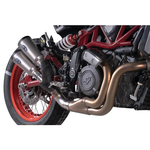 Designed for performance these slip-ons have a nice deep sound. The E-approval of the dual mufflers makes them street legal all over the European community. Slip-ons feature removable dB Killers and come complete with a collector tube with built-in catalytic converter, easy to install on the stock header pipes. Kits also include a carbon fiber heat guard. A Racing collector tube without cat is available separately. The optional ECU Tuning Module is a must when installing the Racing collector. Removal of the dB Killers and/or installation of the optional racing collector voids the E-approval.